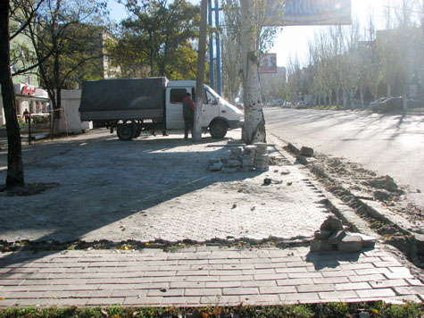 Вот так, очень просто. Причем утром 24 октября работы по обустройству парковки продолжались полным ходом, и участок бывшего газона длиной в добрые 20 метров теперь полностью покрыт плиткой. И – хоть трава не расти. Да она и не будет.