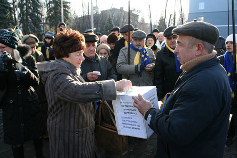Говорили о нетерпимости ситуации, когда правоохранительные органы зверски избивают граждан, о том, что у власти – непрофессионалы, и о том, что всем несогласным нужно объединяться. Собирали средства в помощь столичному «Евромайдану». (Кстати, стало известно, что собрали 1526 грн., и уже сегодня эти деньги отправили в Киев).