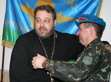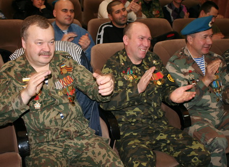 Присутствовавал на концерте и настоятель одного из краматорских храмов отец Сергий - сержант запаса ВДВ, который тоже прошёл в восьмидесятые годы суровую школу жизни в Афганистане. Он обратился с приветственным словом к боевым товарищам и зрителям, поблагодарил за милосердие и сообщил, что с благословления благочинного Краматорского округа прихожане его храма сегодня собрали солидное пожертвование в помощь бедствующим родителям.