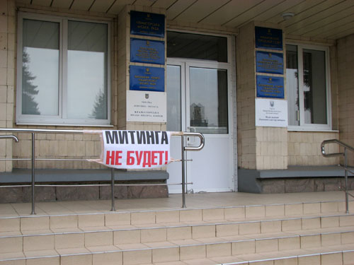 Сегодня днем на крыльце горисполкома появился плакат, извещающий, что "Митинга не будет". Однако, и это естественнно, милиция города предприняла полный комплекс мер по обеспечению безопасности.