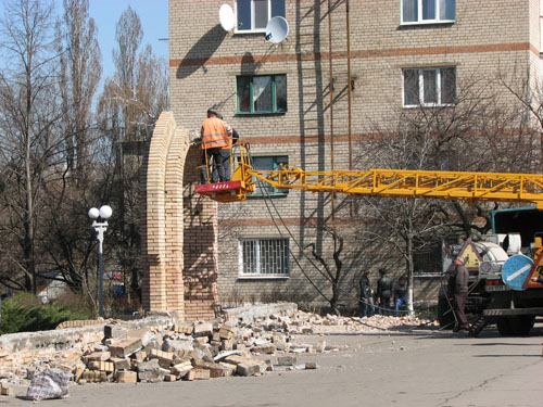 Напомним, что на минувшей неделе арочные конструкции Сквера Победы осмотрела комиссия специалистов УЖКХ, и приняла решение о срочном сносе двух арочных конструкций, выполненных из облицовочного кирпича. К сожалению, материал оказался недолговечным, и кирпич стал активно крошится не только на горизонтальных поверхностях, но и внутри арок, под которыми ходят люди.