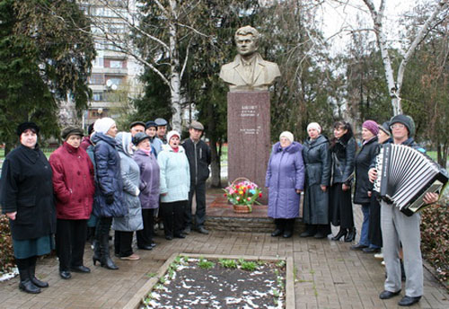 Возле бронзового монумента, возведённого силами местных активистов рядом с ДК имени Ленина, в котором до войны Лёня развивал свой актёрский талант, собрались ценители творчества и почитатели таланта земляка. Вспоминали, пели, грустили, возложили корзину живых цветов.