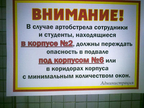 Администрация предупреждает работников и студентов ДГМА о возможности артобстрелов и рекомендует наиболее безопасные места на такой случай.