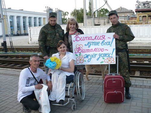 Провожали Виталию на конкурс 14 мая, на железнодорожном вокзале Славянска. Большую помощь в посадке на поезд конкурсантки оказали украинские военнослужащие, за что им - искренняя благодарность.