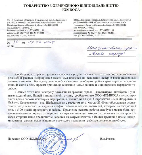 Время работы автотранспорта на маршрутах №10 и №3 в Краматорске может быть продлено до 23 часов. Таков результат переговоров членов инициативной группой "Право народа" с руководством ООО "Юмвоса".