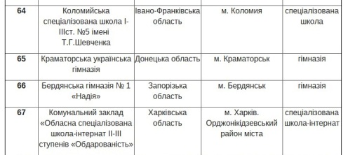 Согласно рейтингу, единственным учебным заведением из Донецкой области, попавшим в первую сотню списка, стала краматорская гимназия, которая занимает достойное 65-е место.
