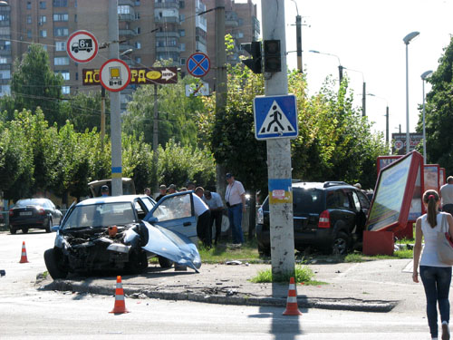 По словам свидетелей, ДТП возле Крытого рынка произошло при неработающих светофорах. Джип с военными на приличной скорости двигался вверх по Парковой и, не уступив дорогу автомобилю, ехавшему по Юбилейной, совершил столкновение.