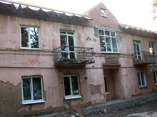 Всю осень, зиму 2014 года и весну-середину лета года 2015-го, дом № 16 по улице Щербакова в Краматорске простоял, открытый дождям и ветру. Жизнь в нем едва теплилась всего в одной квартире, где проживает пожилая пара, которой просто некуда было переселяться. Они и сейчас живут там: в сырости, грязи, пыли и с изъеденными грибком стенами.
