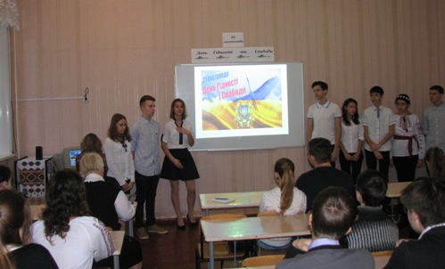 В общеобразовательной школе № 12 Краматорска прошел "урок Майдана" для учеников восьмых классов, посвященный годовщине начала трагических событий в центре украинской столицы.