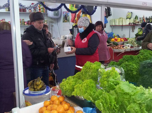 14 января на Крытом рынке бесплатно раздавали марлевые повязки представители городского "Красного Креста". И посетители рынка, и торговцы активно пользовались неожиданной помощью.