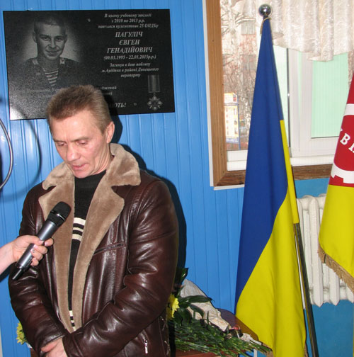На фото вверху: Геннадий Пагулич на открытии доски памяти своего сына в ВПУ № 14 Краматорска