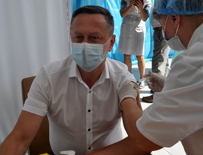 Сегодня, 3 сентября, в центре вакцинации граждан от CОVID-19, расположенном в здании автовокзала Краматорска, был подвергнут прививке на совсем обычный посетитель: мэр города Александр Гончаренко.