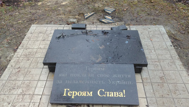 Злоумышленники повалили на землю две плиты с изображением флага Украины и словами из гимна. А Герб Украины разбили и разбросали вокруг того места в сквере афганцев, где в октябре установили этот монумент. После неравнодушные горожане собрали осколки трезубца и положили у опустевшего постамента, - сообщает издание "Знамя индустрии".
