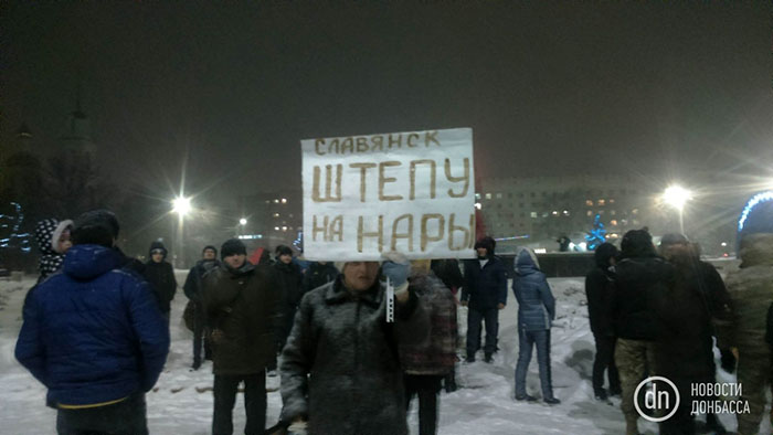 Как сообщает издание «Новости Донбасса», на мероприятии собралось около 200 человек. Надписями на плакатах люди призывают к борьбе с коррупцией, а также высказываются за арест экс-мэра города Нели Штепы.