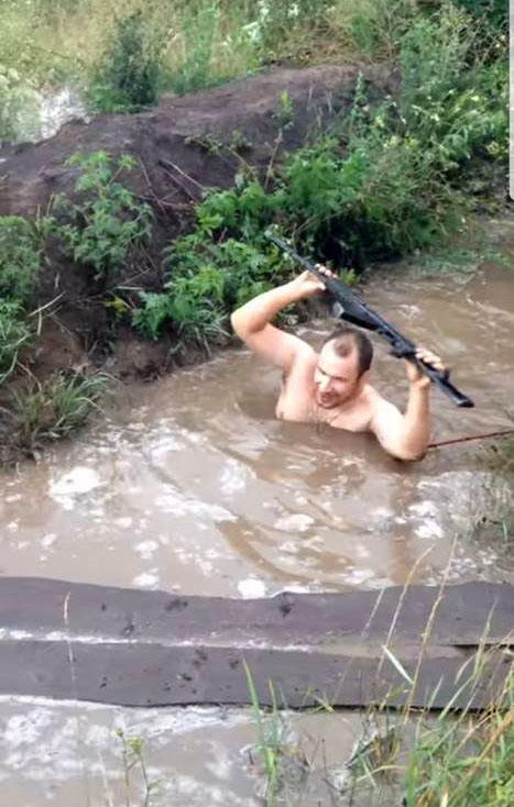 Так, судя по снимкам, уровень воды в окопах - выше пояса. Бойцам приходится носить оружие над головой.