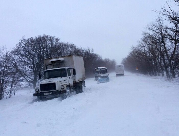 На дорогах области из застрявших в снегу автомобилей образовались пробки. В Волновахском районе между поселками Никольское и Владимировка остановились 2 десятка машин. Еще 20 машин оказались в заторе на трассе из Бахмута перед поворотом.