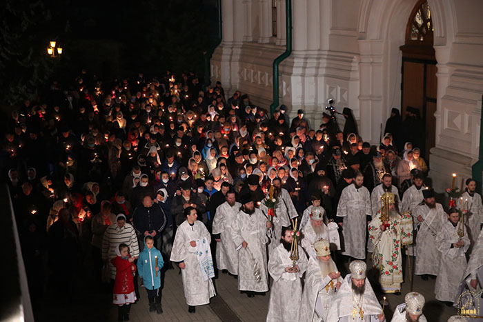В Пасхальную ночь, с 18 на 19 апреля, в Святогорской лавре состоялось большое богослужение. Вели прямую трансляцию, из которой видны сотни людей, которые стоят в тесноте, мало у кого есть маски.