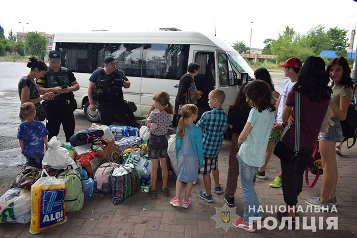 Сотрудники полиции помогли эвакуировать мать с десятью детьми из поселка Былбасовка, что вблизи Славянска.