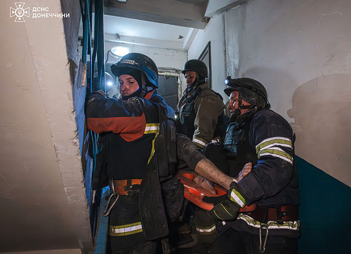Мирноград: внаслідок ракетного удару частково зруйновано житлову 5-поверхівку. Дві людини загинуло, їх тіла деблокували з-під завалів рятувальники.
