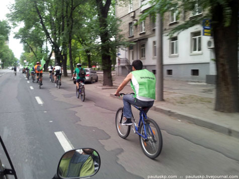 В пробеге приняли участие 20-25 велосипедистов, 4 мотоцикла и десяток автомобилей.