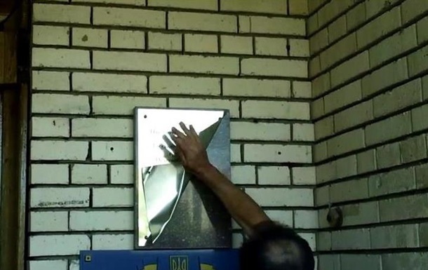 Активисты сорвали доску почета Иосифу Кобзону, установленную на здании городской библиотеки в городе Славянске.