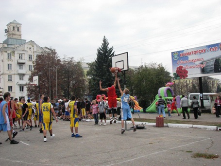 На центральной площади Краматорска сегодня с утра многолюдно. Празднование дня города здесь открылось самыми разными спортивными состязаниями.