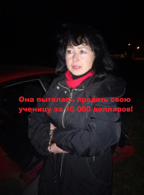 По данным министра МВД, учительница работала в специнтернате для трудных подростков. "Это нелюдь... ее поймали, но она спокойна.. она с моей родной Харьковщины.. и даже не слишком смущена, а что мол такого особенного. Она гражданка Украины, ей 52 года, преподаватель украинского языка и литературы специнтерната для трудных подростков в Харьковской области. Она пыталась продать свою ученицу за 10 тысяч долларов. Подбирала покупателя, торговалась.. Предлагала привести девочку в указанное место и усадить в машину к покупателю. Когда покупатель поинтересовался здоровьем ребенка, намекая, что речь идет об изъятии органов – за 1000 гривен принесла фотографии девочки и медицинскую карту", - написал Аваков.