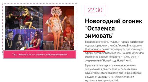 Украинских любителей встретить Новогоднюю ночь перед телеэкраном вместе с каналом "Интер" ждет любопытный "сюрприз". 31 декабря, в 22.30, на канале начнется трансляция "Новогоднего огонька" под названием "Остаемся зимовать", одну из главных ролей в котором будем играть российский актер Ян Цапник.