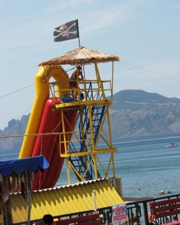 А море – море и пляжи в Орджоникидзе, действительно, чУдные. Скалистые мысы, один за другим, режут побережье на разделенные пляжи. Хочешь песчаный, где голова упирается в чьи-то пятки, а по ногам бродят торговцы «Па-аахлава медовая, трубочки, креветки, пирожки с дома-ашней начинкой»?! До 8 утра еще есть шанс куда-то приткнуться. (Помнится, неизгладимое впечатление произвела там орущая на внучка бабушка: «Коля! Я тебе русским языком сказала - ляж!!!»)