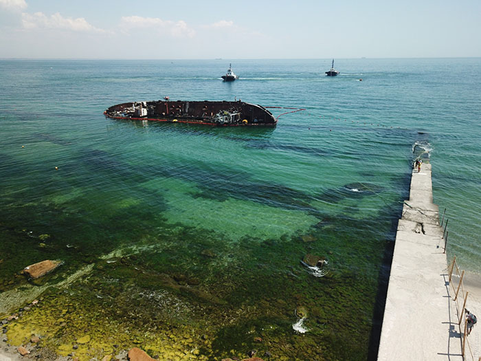Сегодня, 18 июля, в Одессе началась операция по подъему затонувшего танкера Delfi, который затонул осенью 2019 года. Его планируют поставить на киль и отбуксировать с пляжа.