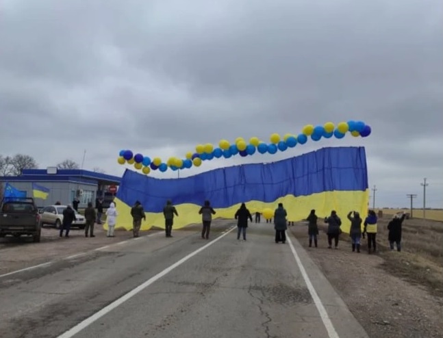 Украинские активисты 28 февраля запустили в сторону оккупированного Россией Крыма флаг Украины. Об этом сообщает издание "Крым. Реалии".