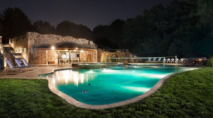 - Стекловолоконные конструкции. Ими можно пользоваться по прямому назначению сразу же после монтажа чаши в котлован. Специалисты установят такую конструкцию максимально быстро – за неделю. Формы стекловолоконных бассейнов ничем не ограничены, ведь материал легко поддается обработке.