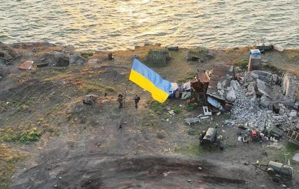 "Как символ победы и возрождения из этих руин, украинские военные установили и закрепили флаг Украины, который был доставлен на остров раньше", - подчеркнуло командование.