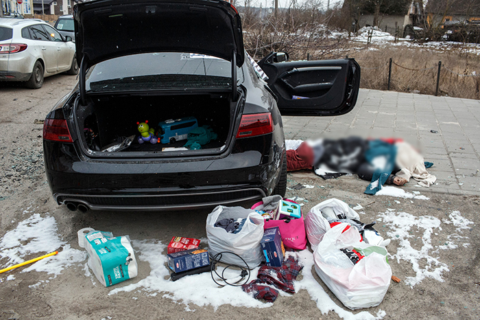 "Першим під вогонь потрапив автомобіль «Рено Трафік», в якому перебували два місцеві жителі. У результаті пасажир загинув на місці, а водій отримав поранення рук. Наступною мішенню військовослужбовців рф став автомобіль «Рено Мастер», на якому житель міста намагався евакуювати своїх батьків..."