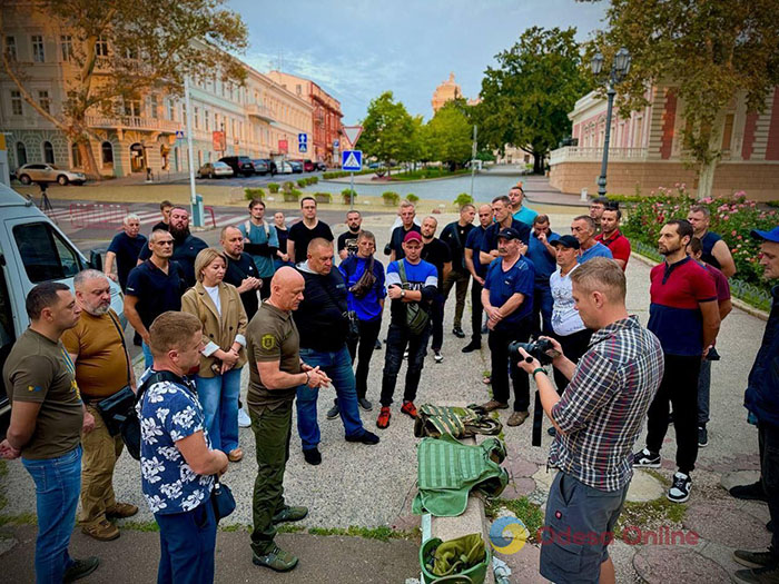 “Всі присутні тут їдуть виключно за власним бажанням. Ми повністю екіпірували їх бронежилетами, касками, тактичними аптечками тощо. Також направляємо необхідну техніку”, – повідомив міський голова Геннадій Труханов.