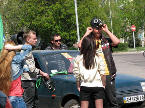 Противогазы и "Нирвана" из мегафонов.