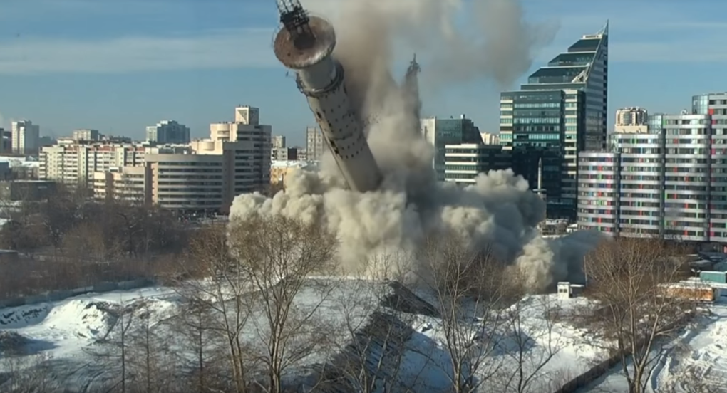 В российском Екатеринбурге снесли методом подрыва 220-метровую телебашню.