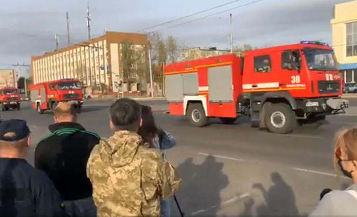 Утром 10 октября в центре Северодонецка десятки жителей города поприветствовали колонну автомобилей ГСЧС, расчеты которых более недели сражались с огнем на подступах к городу.