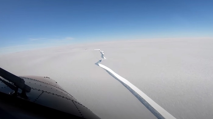 Более 10 лет назад на нем стали появляться крупные трещины. В январе одна из самых больших трещин стала активно расти, в результате 26 февраля от льдины откололся айсберг площадью 1270 квадратных километров.