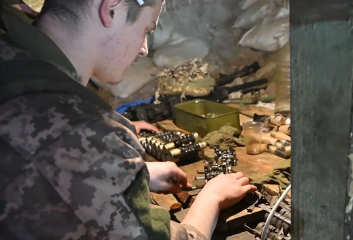 Интервью с Валерием записали прямо на позиции, когда тот чистил оружие. Он выглядел довольно жизнерадостным.