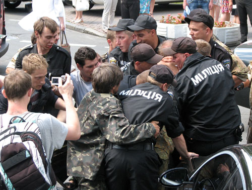 А потом произошло и вовсе нечто странное: разгоряченные самообороновцы устроили разборки... друг с другом, и дело дошло до стрельбы в воздух! Кто-то пальнул 3-4 раза в небо, причем произошло это буквально под окнами Кабинета министров Украины.