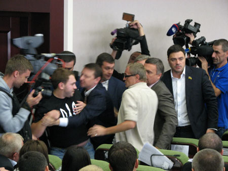 На заседании Киеврады 18 сентября, Игорю Мосийчуку не понравилось выступление "ударовца" Вадима Онуфрийчука, и вся радикальная мощь ринулась бить "ватника"...