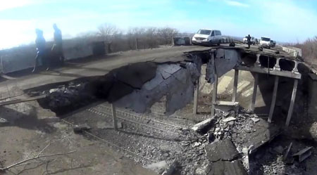Шокирующее видео появилось 6 марта в Сети: автомобильное движение на Дебальцево проходит по полуразрушенногму мосту.