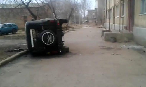 Накануне вечером здесь бесновалась толпа нетрезвой молодежи, требовавшей расправы над водителем военного тягача, который насмерть задавил 8-летнюю девочку.