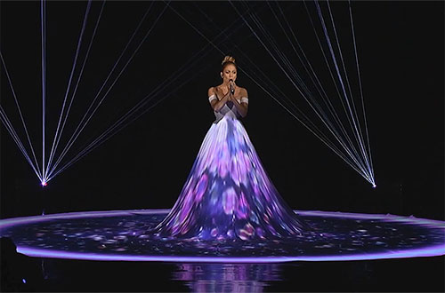 На наряде певице, во время исполнения ее новой композиции "Feel the Light", "транслировались" мультики, а также разнообразные красочные проекции. По словам Дженнифер, они с дизайнерам шли к этому очень долгое время: "Я давно мечтала об этом и ждала подходящего момента. В итоге, мы решили использовать платье как холст! Такого еще никогда не было. Я чувствовала себя по-настоящему особенной", - заявиле певица.