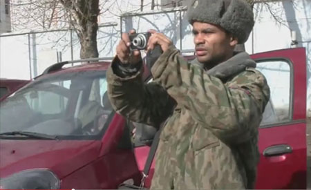 Забавно, что фотографирует эту "процедуру" афроамериканец в военной форме и шапке-ушанке.