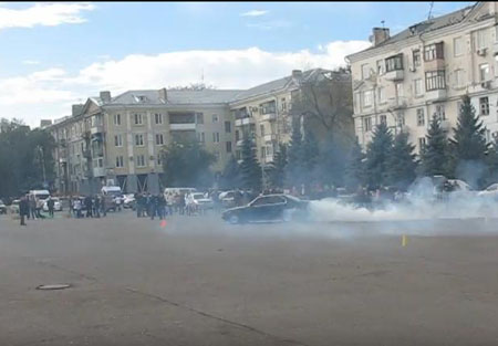 Сегодня, 18 октября, на центральной площади Краматорска дымно и шумно: здесь проходят соревнования по автослалому, организованные одной из политических партий.