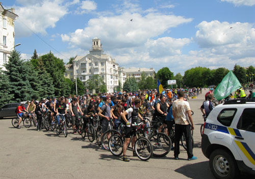 Колонна проехалась по центральным улицам Краматорска, после чего отправится в парк "Юбилейный", где у "сухого фонтана" откроется велосипедный праздник.
