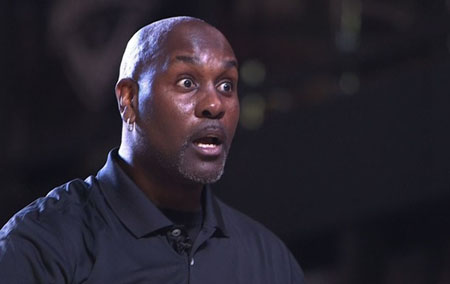 Канадский данкер* Джордан Килганон повеселил публику в Рио и шокировал легендарных игроков НБА Глена Райса и Гэри Пейтона искусством высочайших прыжков и точностью забросов мяча в кольцо.