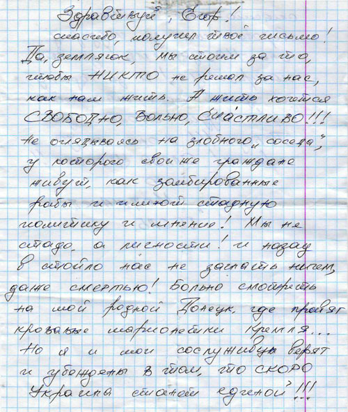 На днях один из учеников школы получил письмо от военнослужащего 55-й отдельной артиллерийской бригады под позывным "Моджахед". С разрешения абонента, приводим сканы полученного письма.